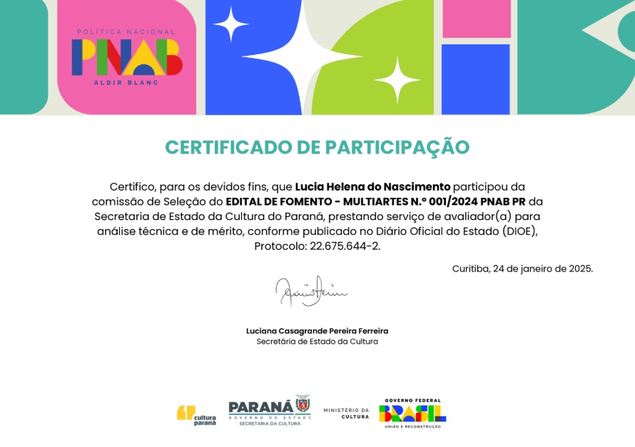 2025 – Parecerista do Edital PNAB multiartes da Secretaria de Estado da Cultura do Paraná
