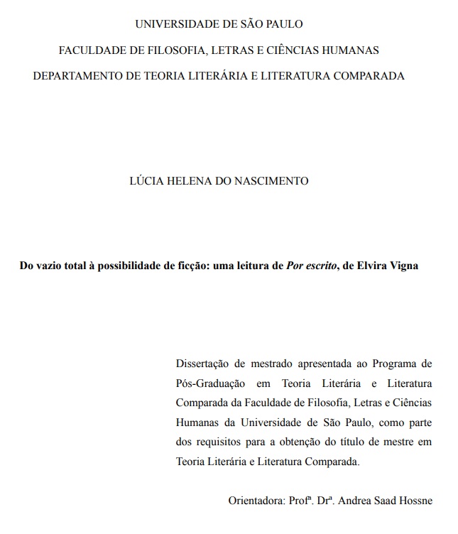 Do vazio total à possibilidade de ficção: uma leitura de Por escrito, de Elvira Vigna