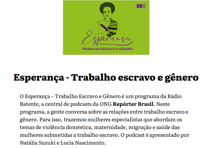 Esperança l Trabalho escravo e gênero (podcast)